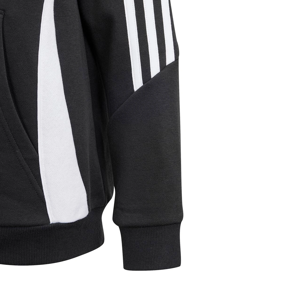 Both on and off the pitch, comfort is non-negotiable. This adidas sweatshirt for young talents is made from a soft fleece fabric that gives you the warmth you need for your journeys to the pitch. When you need to focus before the match or training, simply put on the roomy hood and shut out the outside world.
