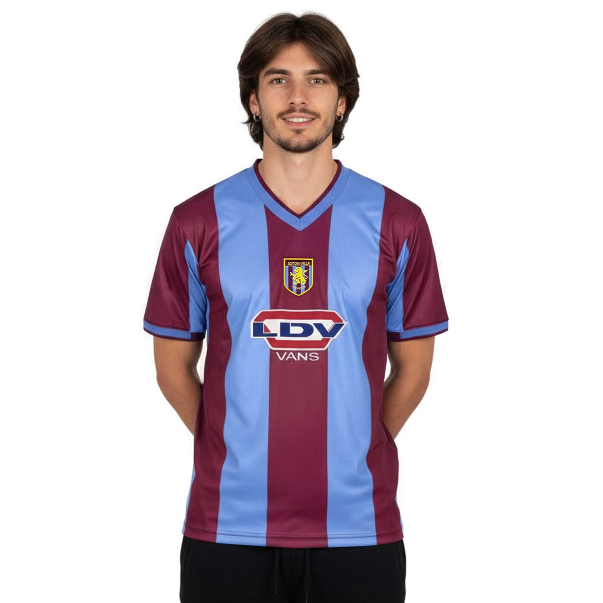 Specially designed for adults, this base jersey is perfect for those seeking authenticity and wanting to feel part of their favorite team’s legacy. The club crest on the chest is a mark of pride and tradition, while the classic LDV Vans logo gives it that retro touch nostalgic fans adore. You can wear it comfortably every day thanks to its soft and breathable fabric. Ideal for wearing to the stadium, meeting up with friends, or simply strolling around showing your colours. The quality of the materials ensures durability worthy of the Aston Villa legends who have graced the Villa Park pitch. Put on this jersey and relive the memorable moments of the 2000 season, a golden era forever etched in the memory of the fans.