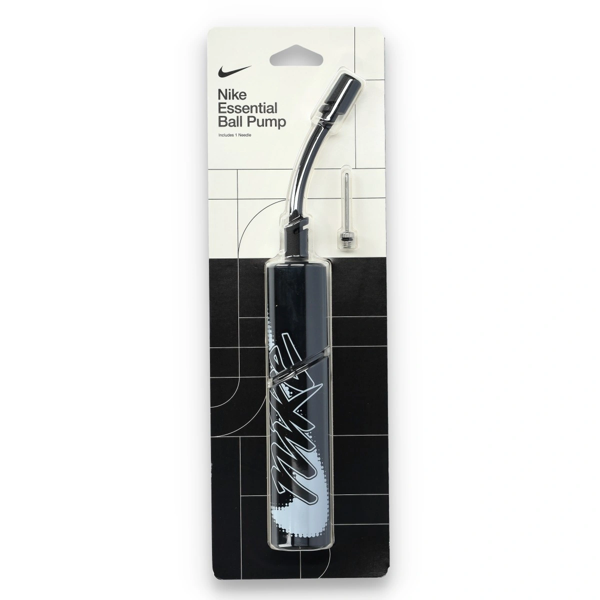 Bomba de pelota Nike Essential. Diseño compacto con manguera adjunta para facilitar el transporte. La bomba eficiente comprime el aire para un llenado rápido.