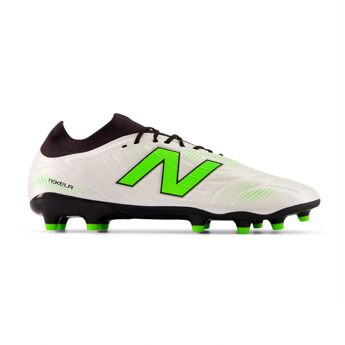 Bota de fútbol Tekela Pro Low FG V5 New Balance para adulto. Botas en color White para usar en campos de hierba natural.