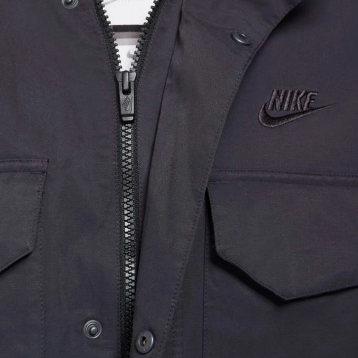 La chaqueta Nike Sportswear M65 cuenta con un diseño de estilo militar confeccionado en un tejido Woven muy duradero. El cierre de cremallera cuenta con una solapa de cierre a presión que te permite resguardarte mejor del frío y los bolsillos delanteros con solapa te ayudan a guardar tus básicos de forma segura.