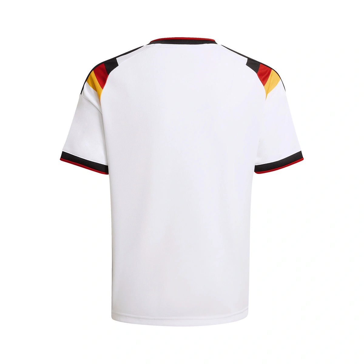 El jersey adidas del primer uniforme de Alemania de la Copa del Mundo 2026 está diseñado para los jóvenes entusiastas del fútbol que sueñan con emular a sus héroes sobre el terreno de juego. Este jersey combina la esencia de momentos icónicos con tecnología de vanguardia, para destacar tanto en estilo como en juego.