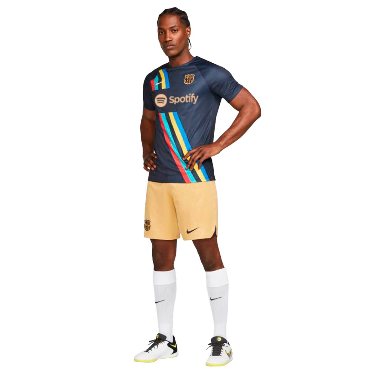 El FC Barcelona Away Top te da el mismo look que tus jugadores favoritos. La tecnología que absorbe el sudor es ligera y transpirable para mantenerte seco mientras te preparas para el partido. Este producto está hecho con fibras de poliéster 100% recicladas.