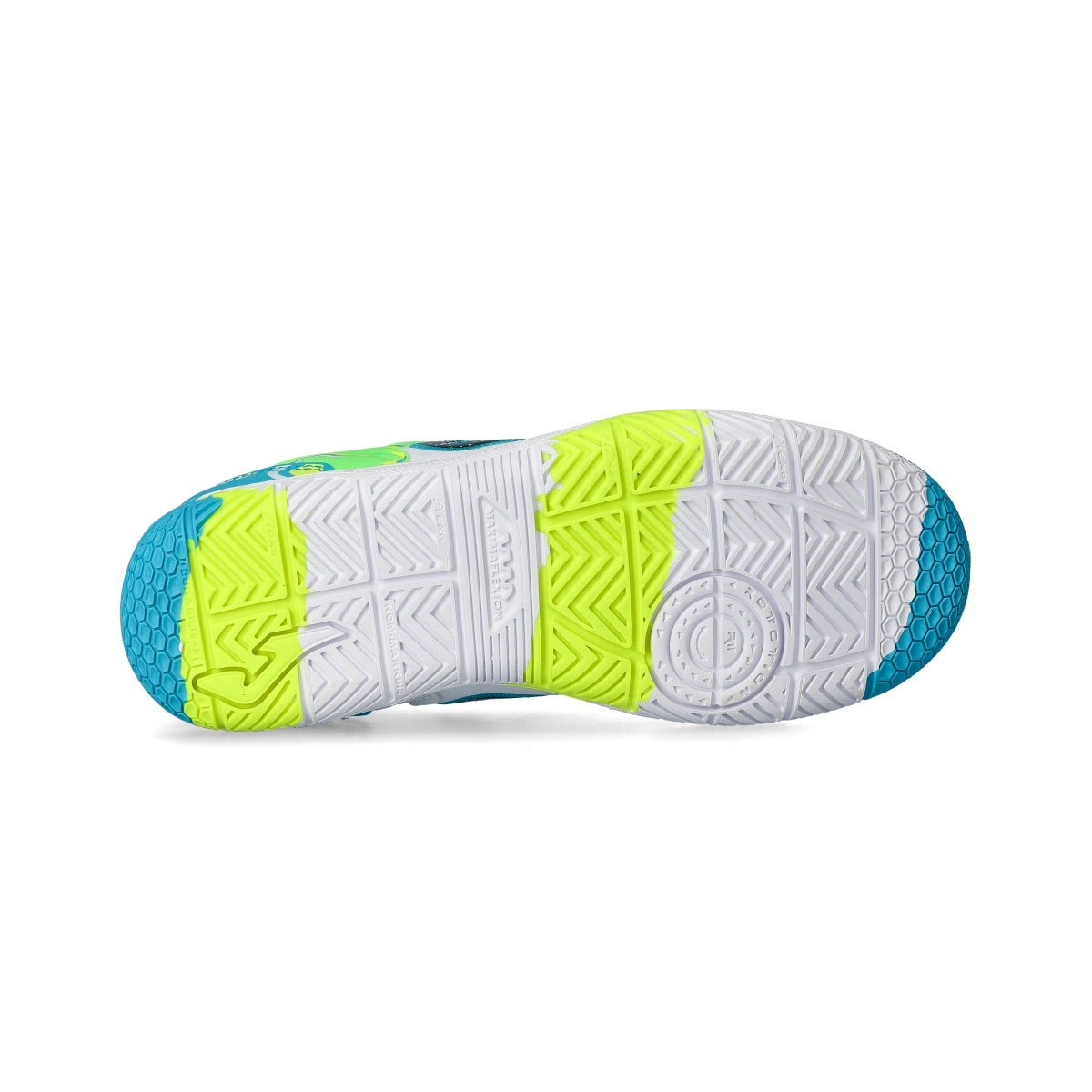 La suela es de caucho DURABILITY de excelente calidad y buena resistencia a la abrasión, que se agarra perfectamente a la pista indoor. Incorpora estructuras geométricas ROTATION, que facilitan los giros de manera segura y previenen posibles lesiones.