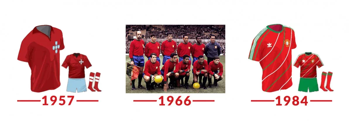 em 1984 chegamos uma vez mais às meias-finais, desta feita num Europeu e uma vez mais parados pela seleção da casa, mas “vingança” estava prevista para umas décadas mais tarde no Europeu de 2016. Equipamento adidas com riscas a atravessar a camisola em cores verde e branco sob o fundo vermelho caracterizava a camisola da seleção nacional nesse ano.