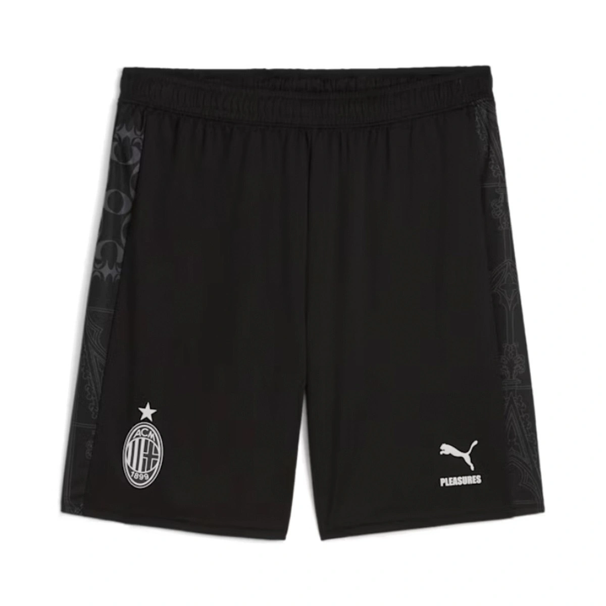Estes calções da coleção AC Milan Quarto Equipamento x Pleasures 2023-2024, desenhados pela Puma, são perfeitos para os verdadeiros adeptos de futebol e de treinos intensos. Imagina combinar o estilo autêntico da tua equipa com uma funcionalidade incomparável para as tuas sessões de exercício.