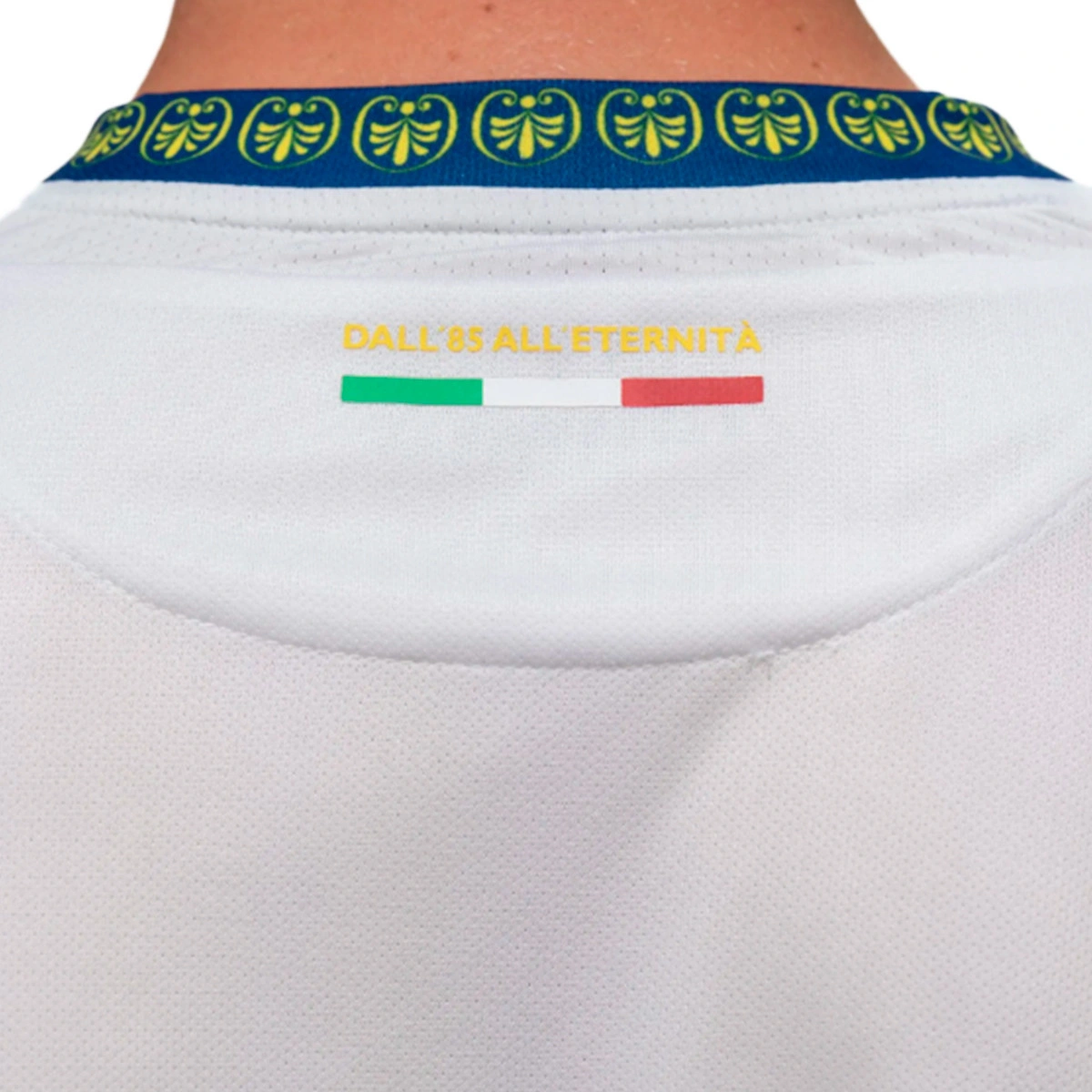 Com a camisola do segundo equipamento do Hellas Verona 2024 - 2025 da Joma, vais sentir-te parte da equipa desde o primeiro momento. Cada detalhe desta camisola foi feito para os verdadeiros adeptos: desde o emblema cuidadosamente bordado, até aos detalhes icónicos que lembram as memórias dos jogos mais emocionantes.