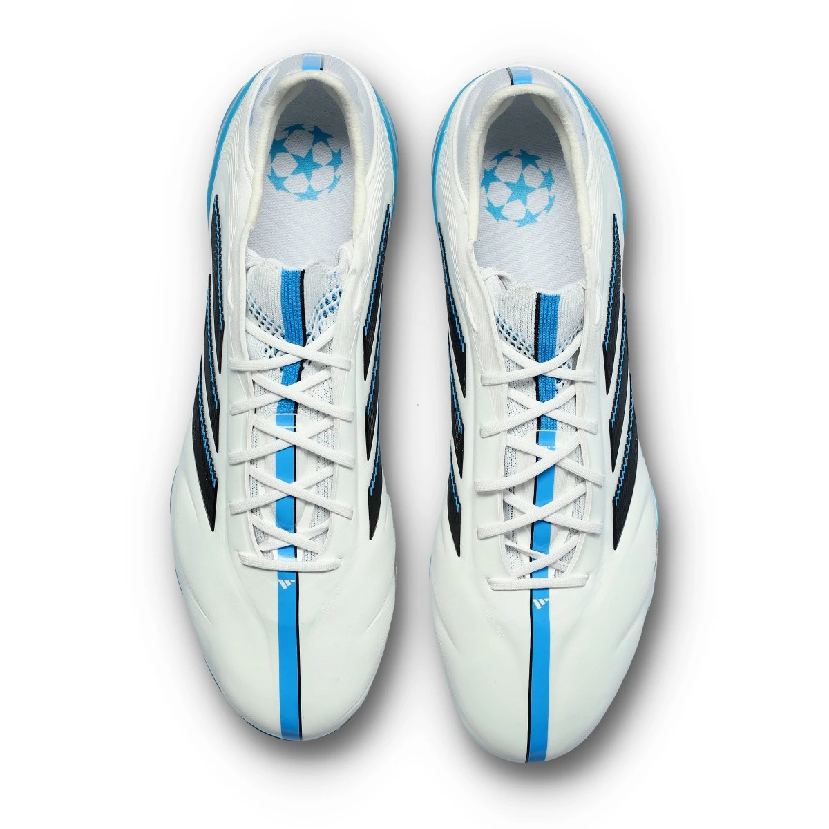 Chuteiras adidas Copa 11 Pure FG. Chuteiras de pele para serem usadas em relva natural. Chuteiras de gama alta nas cores White-Blue para jogadores clássicos.
