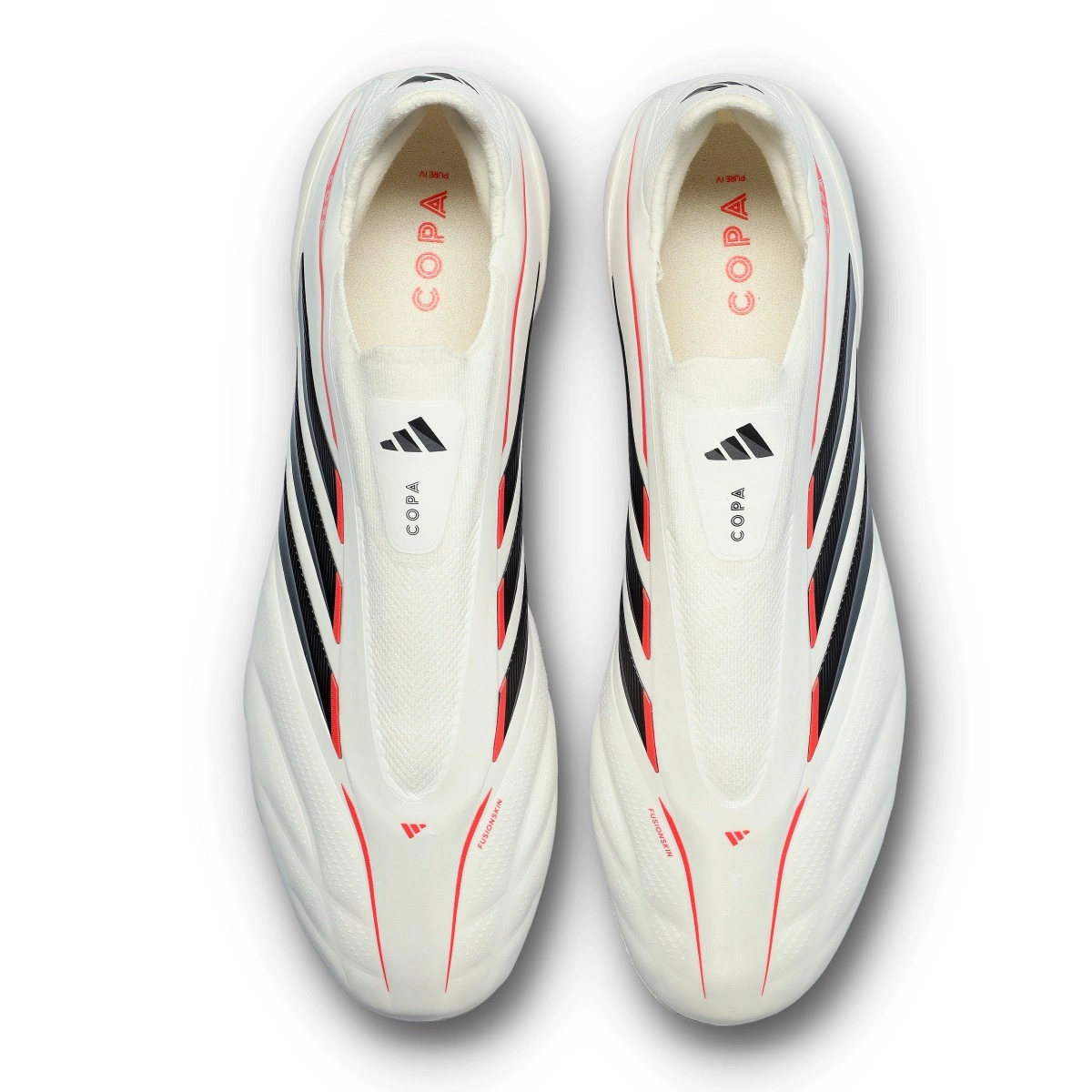 Chuteiras adidas Copa Pure IV Elite LL FG. Chuteiras de pele sem cordões para serem usadas em relvados naturais. Chuteiras de gama alta na cor Zero Met-Core Black-Lucid Red para jogadores clássicos.