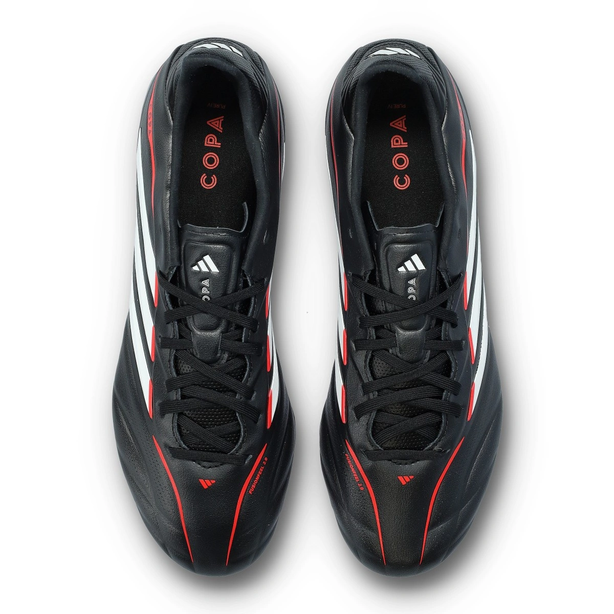 Fabricada numa só peça anatómica com construção de dois materiais. Feita através de Fusionfeel 2.0. Um couro melhorado que oferece um contacto perfeito com a bola. Microimpressão 3D nos lados medial e lateral do peito do pé para textura e sensação tátil adicionais. A parte superior conta com uma linha que presta homenagem às míticas Adipure, sendo um sinal distinto do modelo.