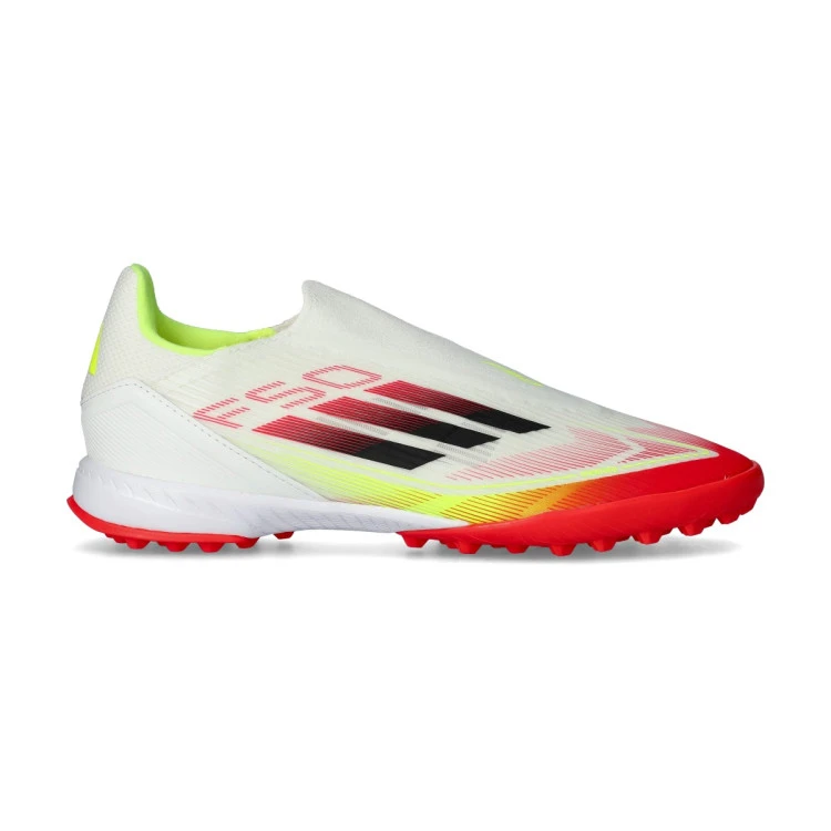 Chuteira F50 League LL Turf da adidas na cor White-Core Black-Solar Yellow. Chuteira de gama básica para ser usada em tapete sintético ou relva artificial.