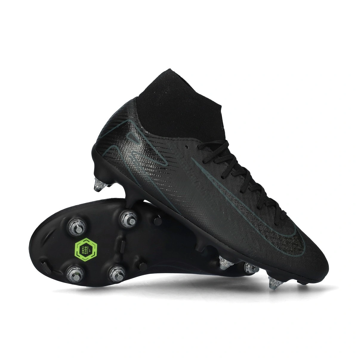 Chuteiras Nike Superfly VI Club SG-Pro para adultos. Chuteiras sintéticas, com meia, para campos de relva natural molhada ou húmida. Chuteiras de gama media em cor Black para jogadores letais.