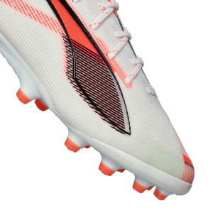 Chuteira Puma Ultra 5 Ultimate AG para mulher. Chuteiras de microfibra para serem usadas em relva artificial. Chuteiras de gama alta na cor White-White-Glowing Red.