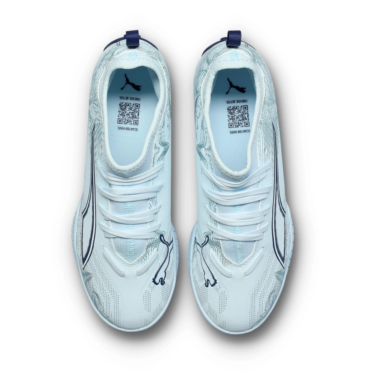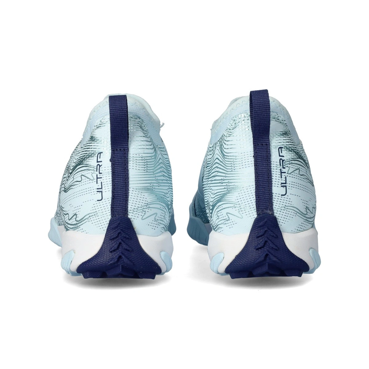 Chuteira Puma Ultra 6 Match+ LL Turf Mid para criança. Chuteiras sintéticas para serem usadas em campos de relva artificial ou sintético. Chuteiras de gama básica na cor Icy Blue-Blue Jewel.