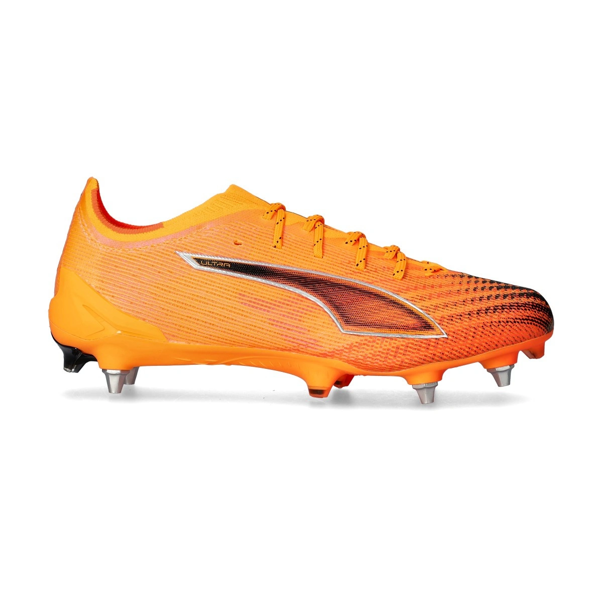 Chuteiras Puma Ultra 6 Ultimate MxSG. Chuteiras de microfibra para serem usadas em relva natural húmida ou lamacenta. Chuteiras de gama alta na cor Heat Fire-Black-Glowing Red.