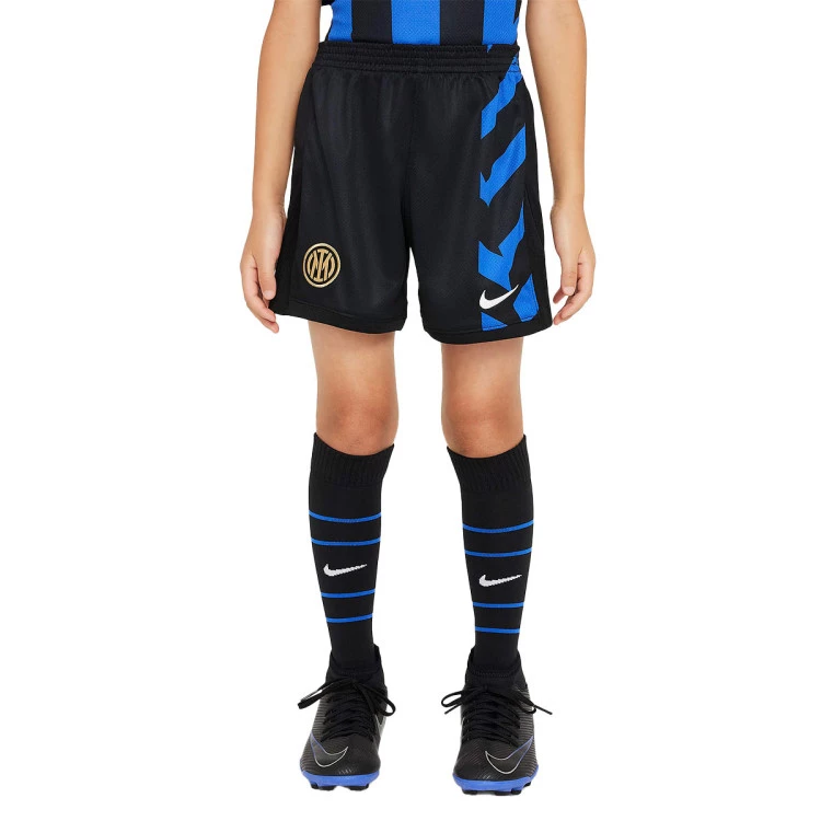 Conjunto do primeiro equipamento do Inter de Milão para a época 2024-2025 para criança. Equipa as futuras estrelas com um equipamento completo com este conjunto de três peças que inclui uma camisola de equipa com calções e meias a condizer.