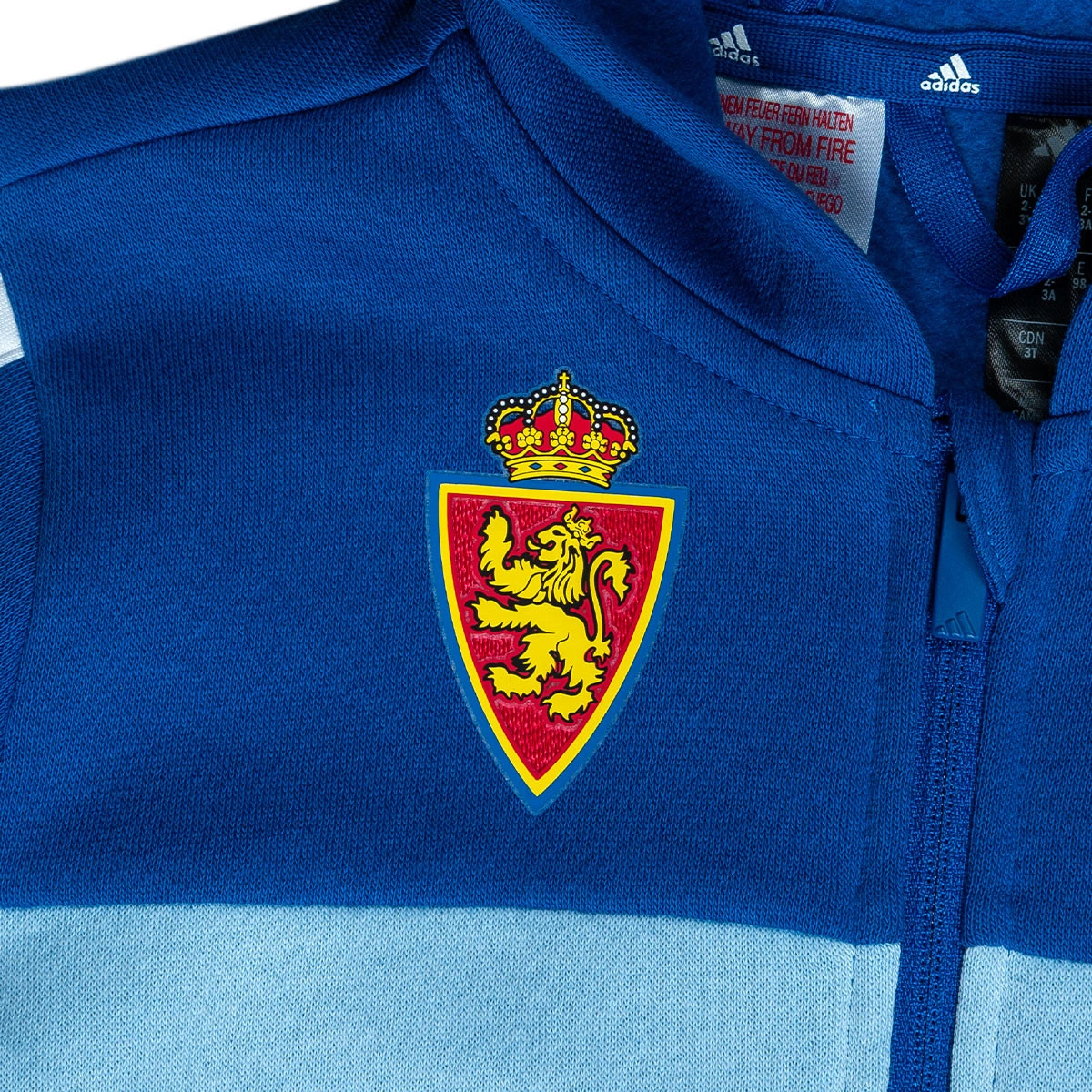 Este fato de treino adidas, desenhado para os pequenos adeptos do Real Zaragoza, é uma verdadeira joia que combina na perfeição desporto e moda.