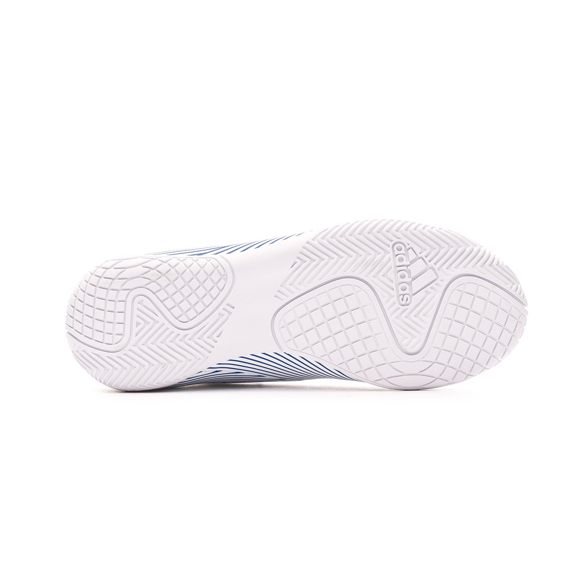 Sapatilha de futsal adidas Nemeziz 19.4 IN para crianças. Sapatilha de corte sintético para utilizar em pistas interiores ou exteriores pouco abrasivas. Sapatilhas de futsal de gama baixa, cor White-Team royal blue-Black