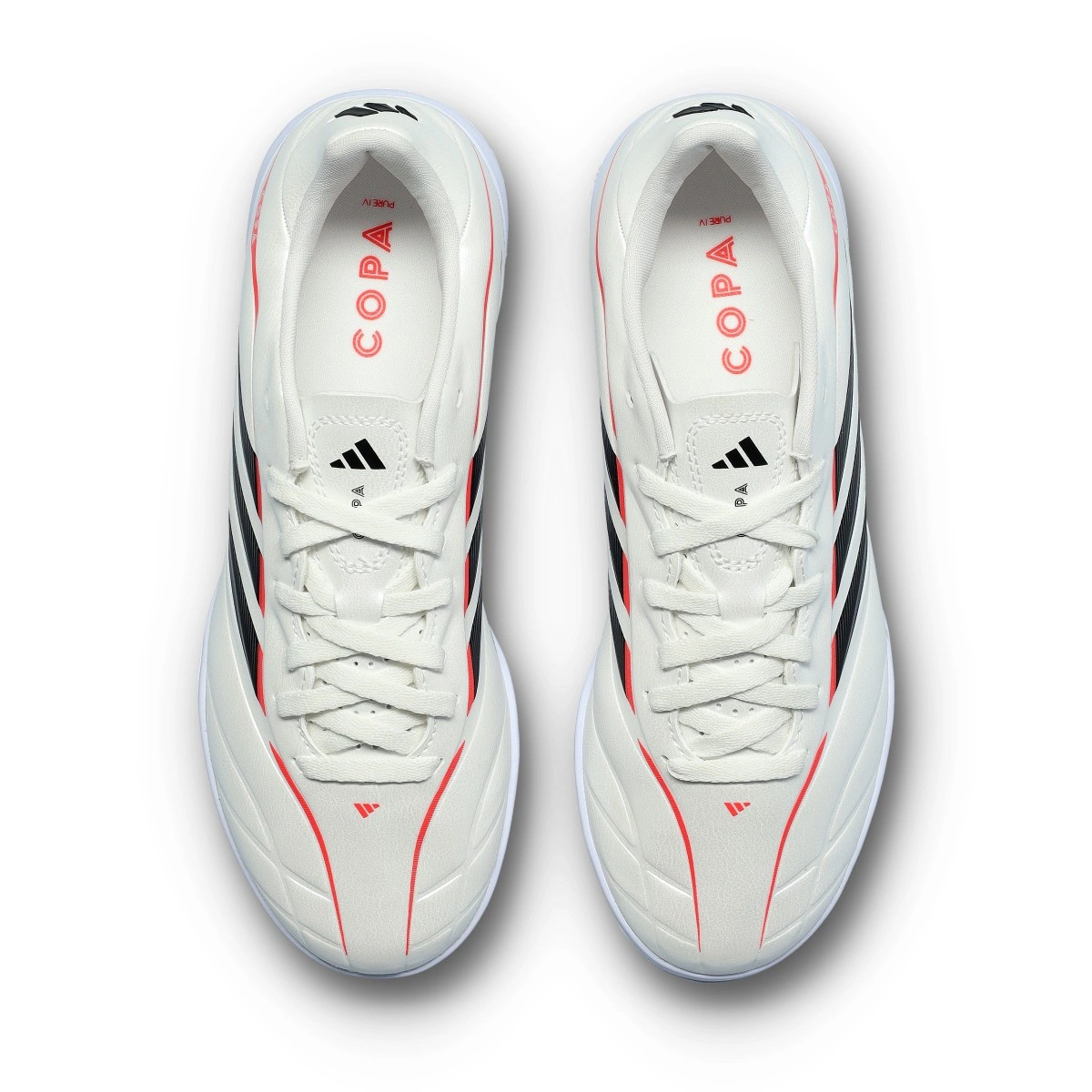 Sapatilha de futsal Copa Pure IV Club IN para criança da adidas. Sapatilha na cor Zero Met-Core Black-Lucid Red.