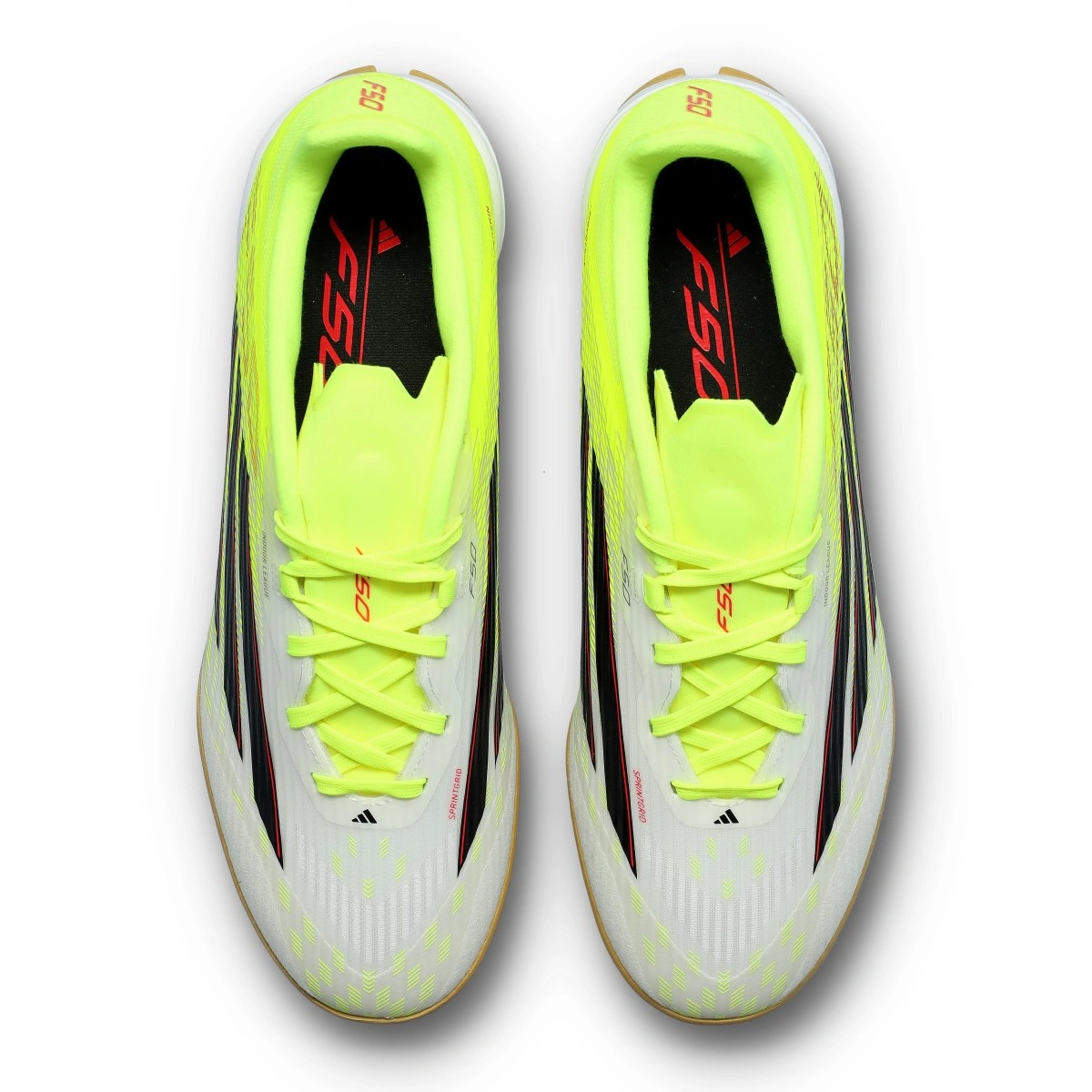 Sapatilha F50 League IN da marca adidas na cor Team Solar Yellow-Core Black-Lucid Red.