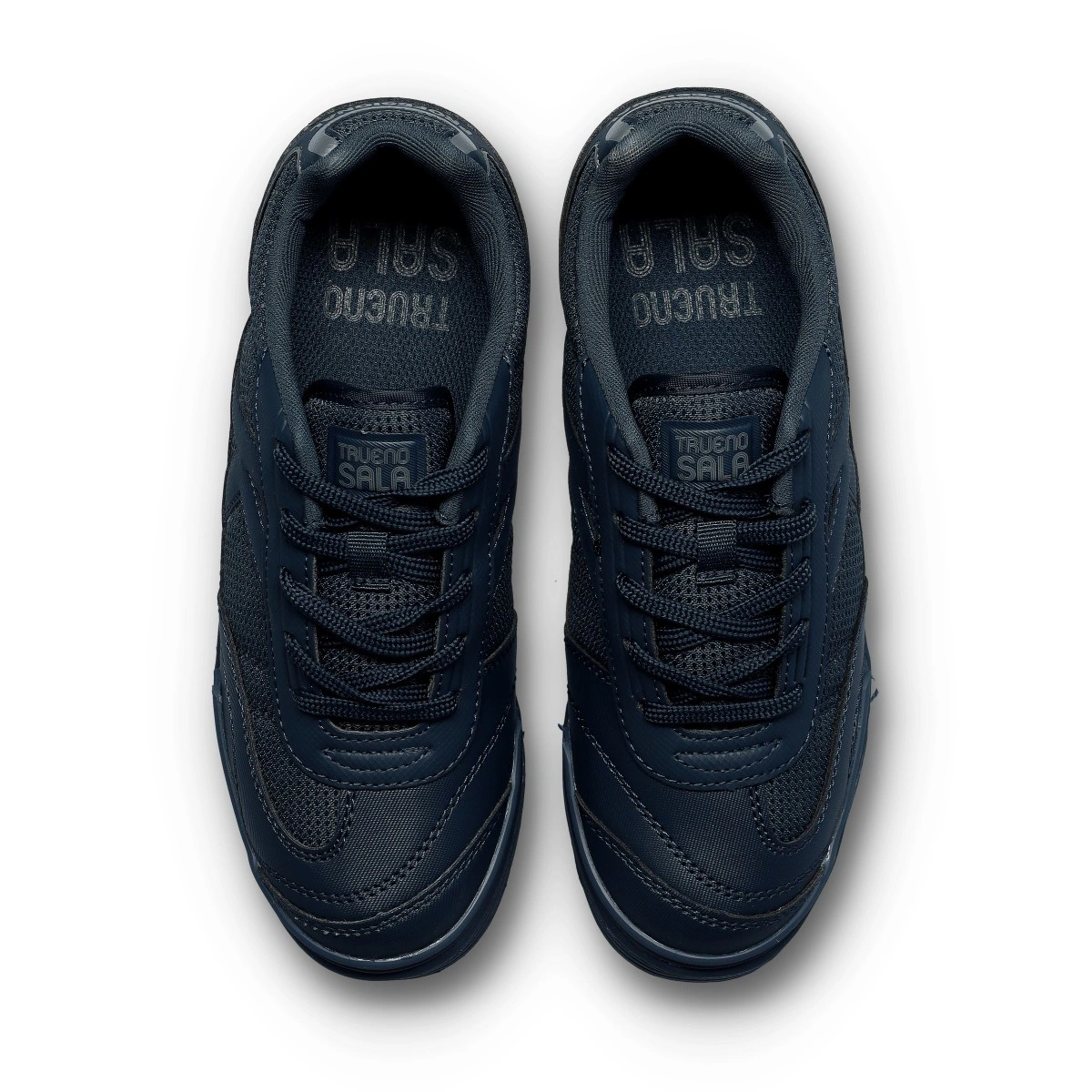 Sapatilhas de futsal desenhadas para o dia-a-dia de uma criança. Utiliza materiais resistentes, leves e respiráveis, bem como uma sola larga que permite uma maior resistência à abrasão. Possui um fecho de adesivo e cordões para garantir um melhor ajuste ao pé.