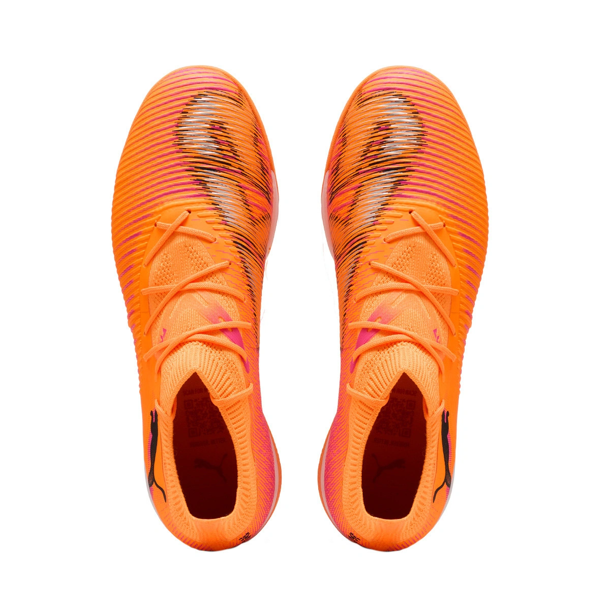 Sapatilhas de futsal Puma Future 8 Match IT. Chuteiras sintéticas para serem usadas em pavilhões interiores. Chuteiras de gama média na cor Heat Fire-Black-Ravish.