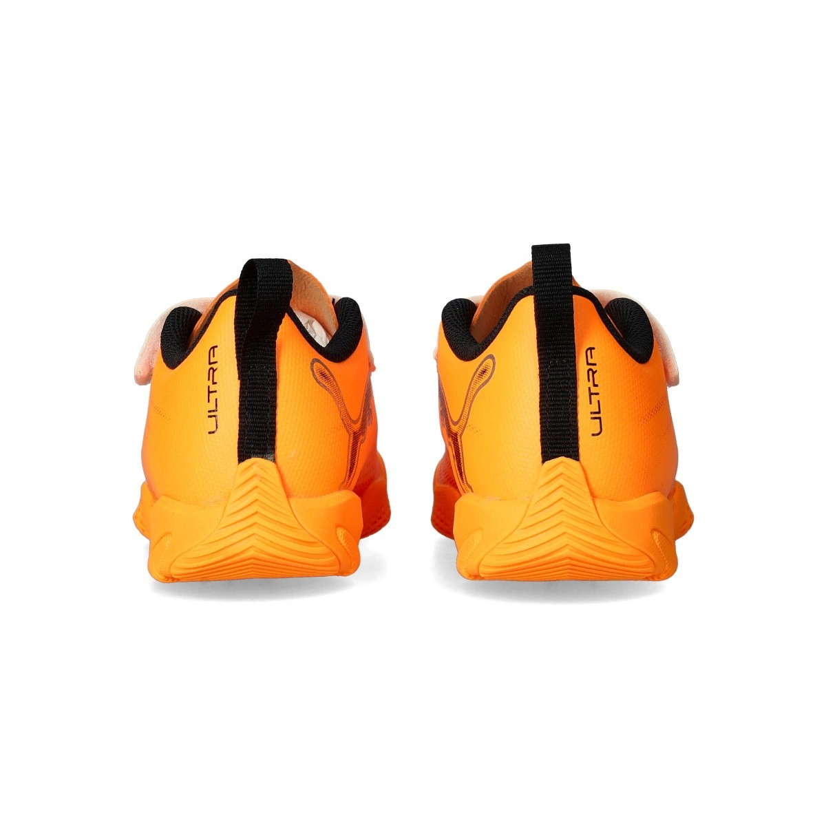 Sapatilhas de futsal Puma Ultra 6 Play V IT para criança. Sapatilhas sintéticas para serem usadas em cimento e taco. Sapatilhas de gama média na cor Heat Fire-Black-Glowing Red.